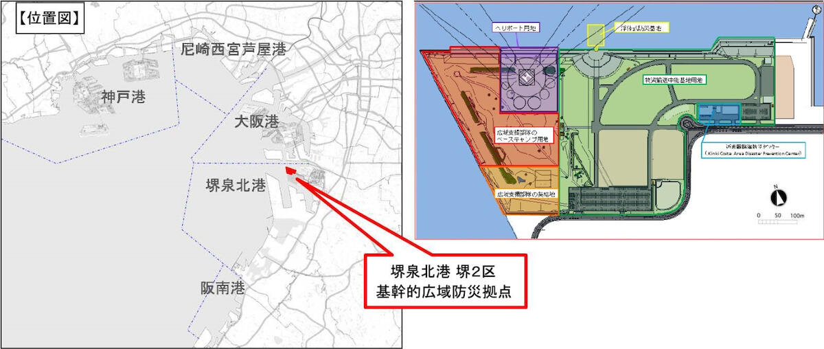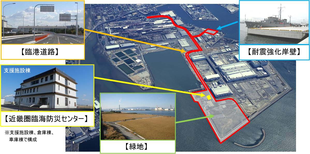 堺泉北港堺2区基幹的広域防災拠点は4つの施設で構成されています。詳細は各施設の図をクリックしてご覧ください。